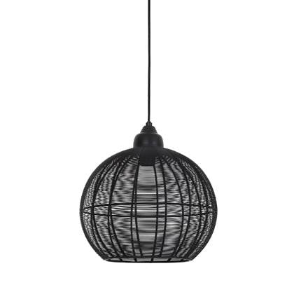 Deze industriële hanglamp is gemaakt van zwart draadstaal. Dit