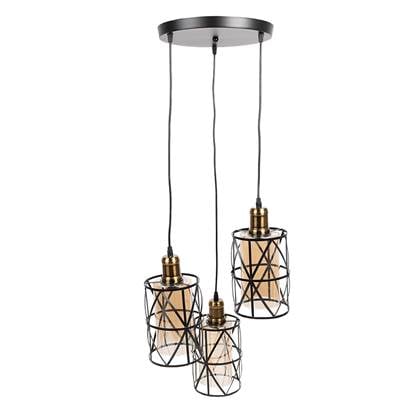 Industriële zwarte hanglamp, met 3 metalen lampenkappen met aan