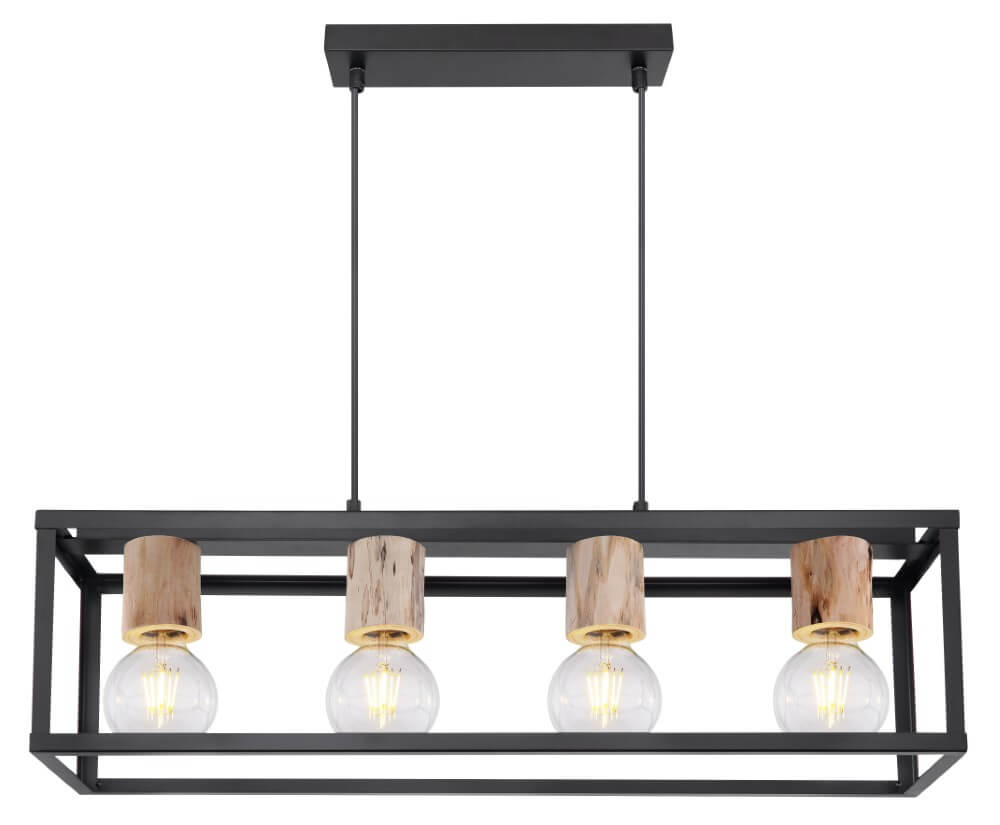 Globo 4-lichts hanglamp Hagar zwart met hout 15476-4H