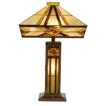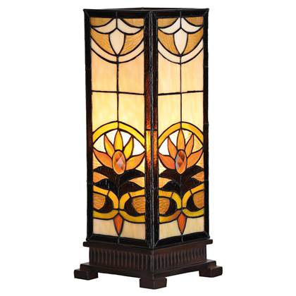 Clayre & Eef Tiffany Tafellamp 18x18x45 cm Beige Bruin Glas Vierkant
